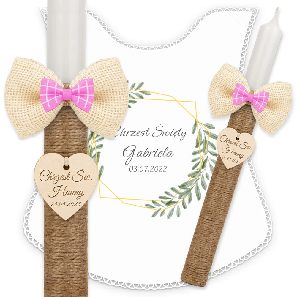 ✅ personalizacja (imię oraz data chrztu) na świecy oraz szatce.