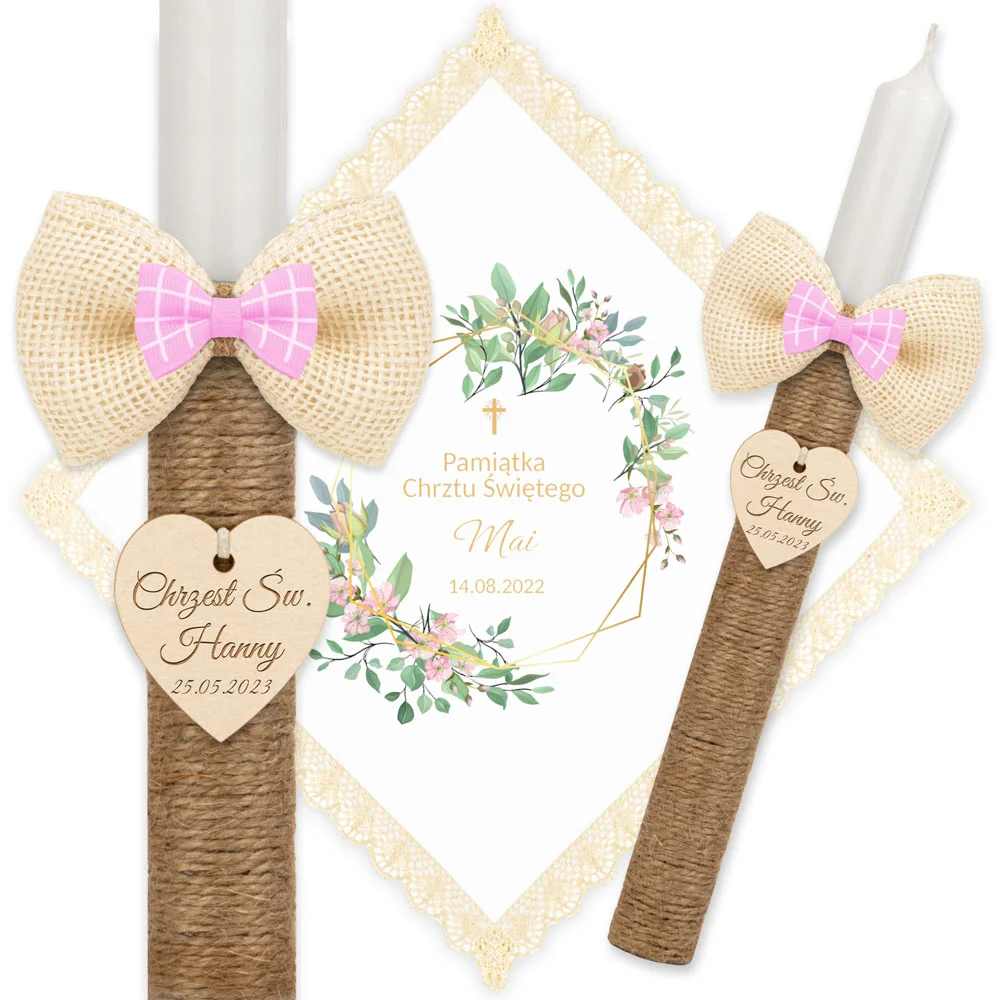 ✅ personalizacja (imię oraz data chrztu) na świecy oraz szatce.