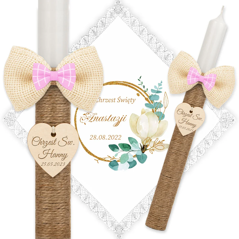 ✅ personalizacja (imię oraz data chrztu) na świecy oraz szatce.