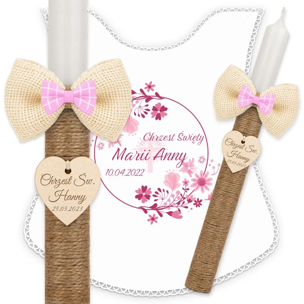✅ personalizacja (imię oraz data chrztu) na świecy oraz szatce.