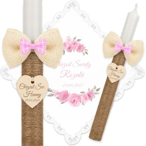 ✅ personalizacja (imię oraz data chrztu) na świecy oraz szatce.