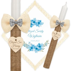 Ręcznie zdobiony zestaw Świeca oraz szatka do Chrztu Świętego.