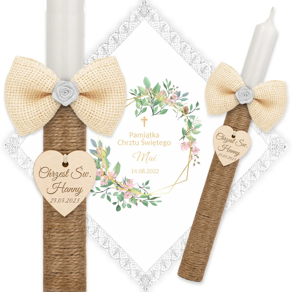 ✅ personalizacja (imię oraz data chrztu) na świecy oraz szatce.