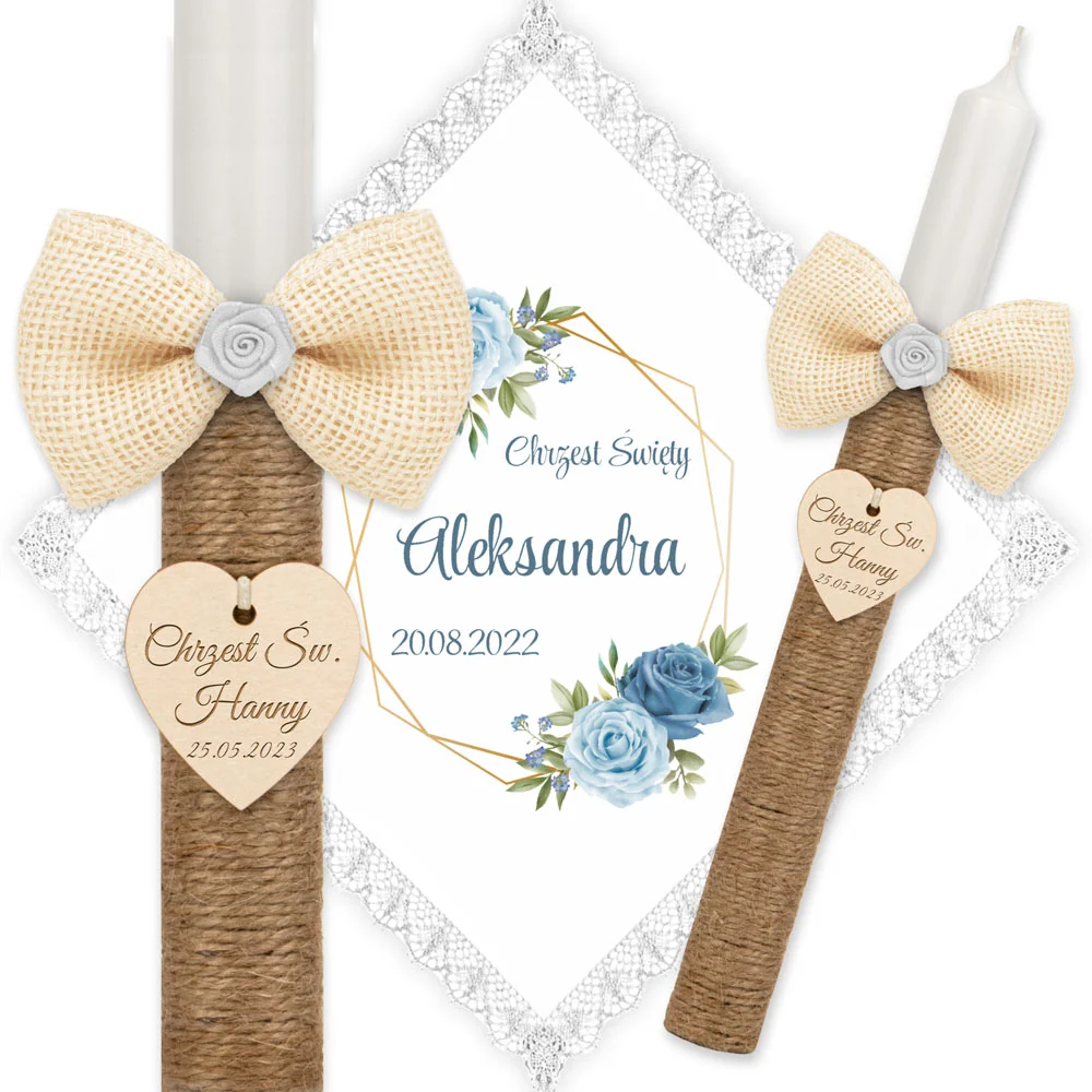 ✅ personalizacja (imię oraz data chrztu) na świecy oraz szatce.