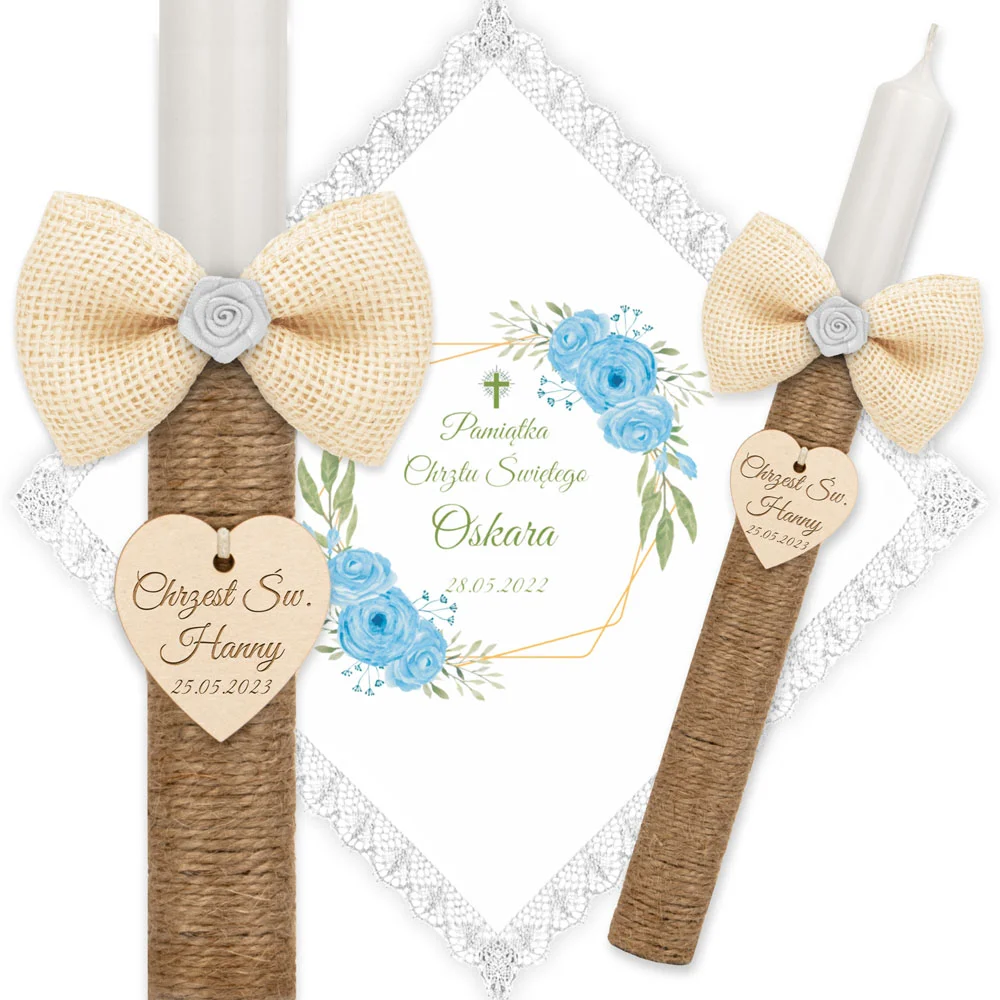 ✅ personalizacja (imię oraz data chrztu) na świecy oraz szatce.