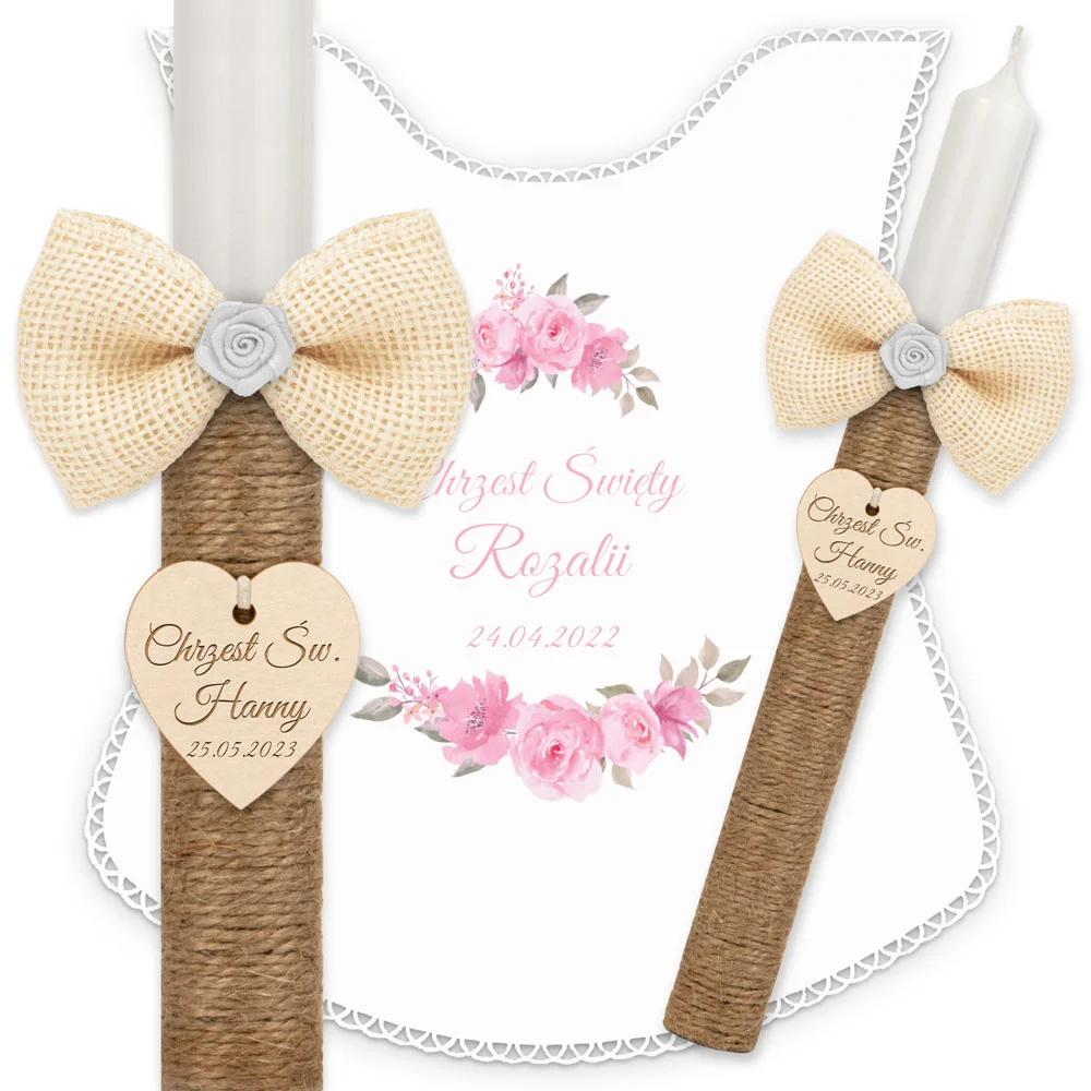 ✅ personalizacja (imię oraz data chrztu) na świecy oraz szatce.