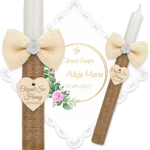 ✅ personalizacja (imię oraz data chrztu) na świecy oraz szatce.