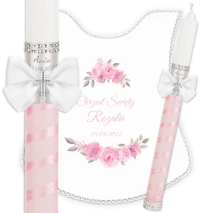 Ręcznie zdobiony zestaw Świeca oraz szatka do Chrztu Świętego.