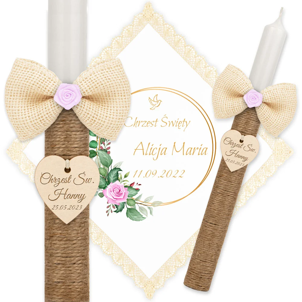 ✅ personalizacja (imię oraz data chrztu) na świecy oraz szatce.