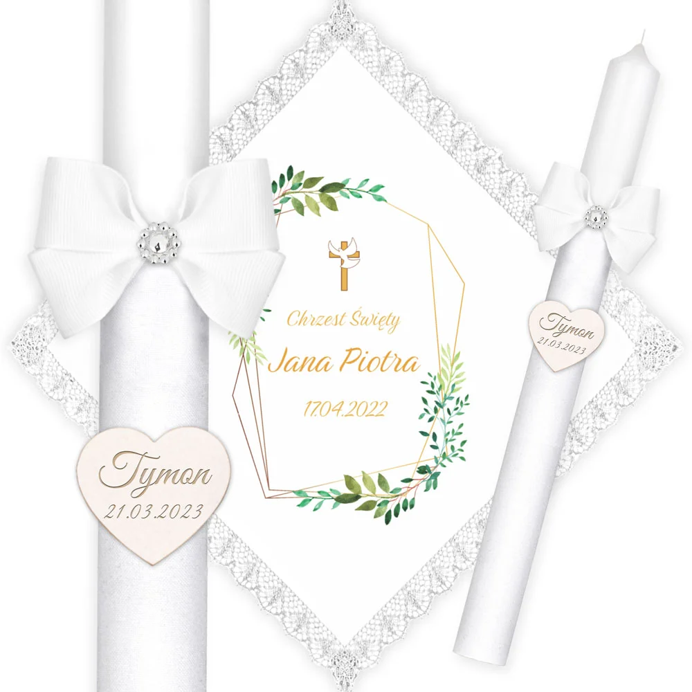 ✅ personalizacja (imię oraz data chrztu) na świecy oraz szatce.