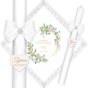 ✅ personalizacja (imię oraz data chrztu) na świecy oraz szatce.