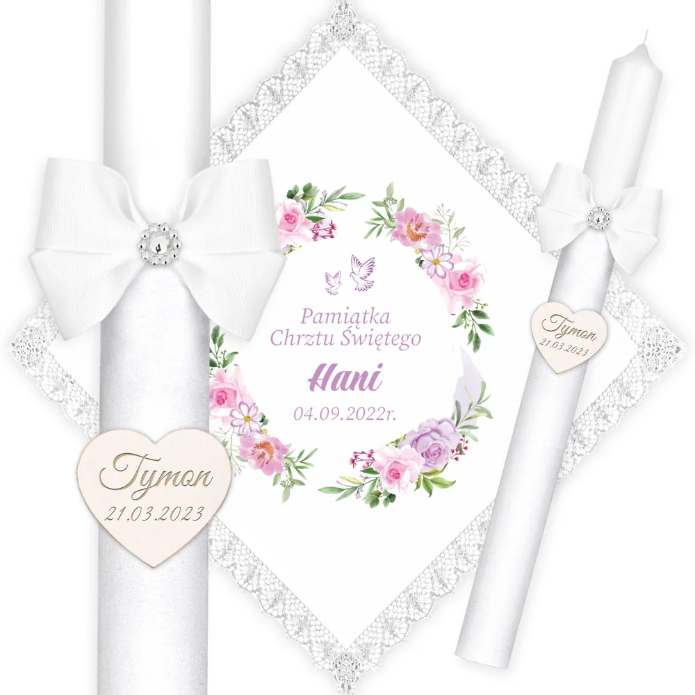 ✅ świeca na chrzest wraz z personalizacją (imieniem dziecka i datą chrztu),