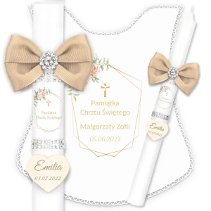 Świeca do chrztu oraz szatka na chrzest to najczęściej wybierany zestaw przez rodziców i chrzestnych. Oba te elementy są niezbędne w trakcie ceremonii chrztu, niosą ze sobą ważną symbolikę. Szatka to symbol czystości, świeca zaś jest symbolem światła prowadzącego przez życie.