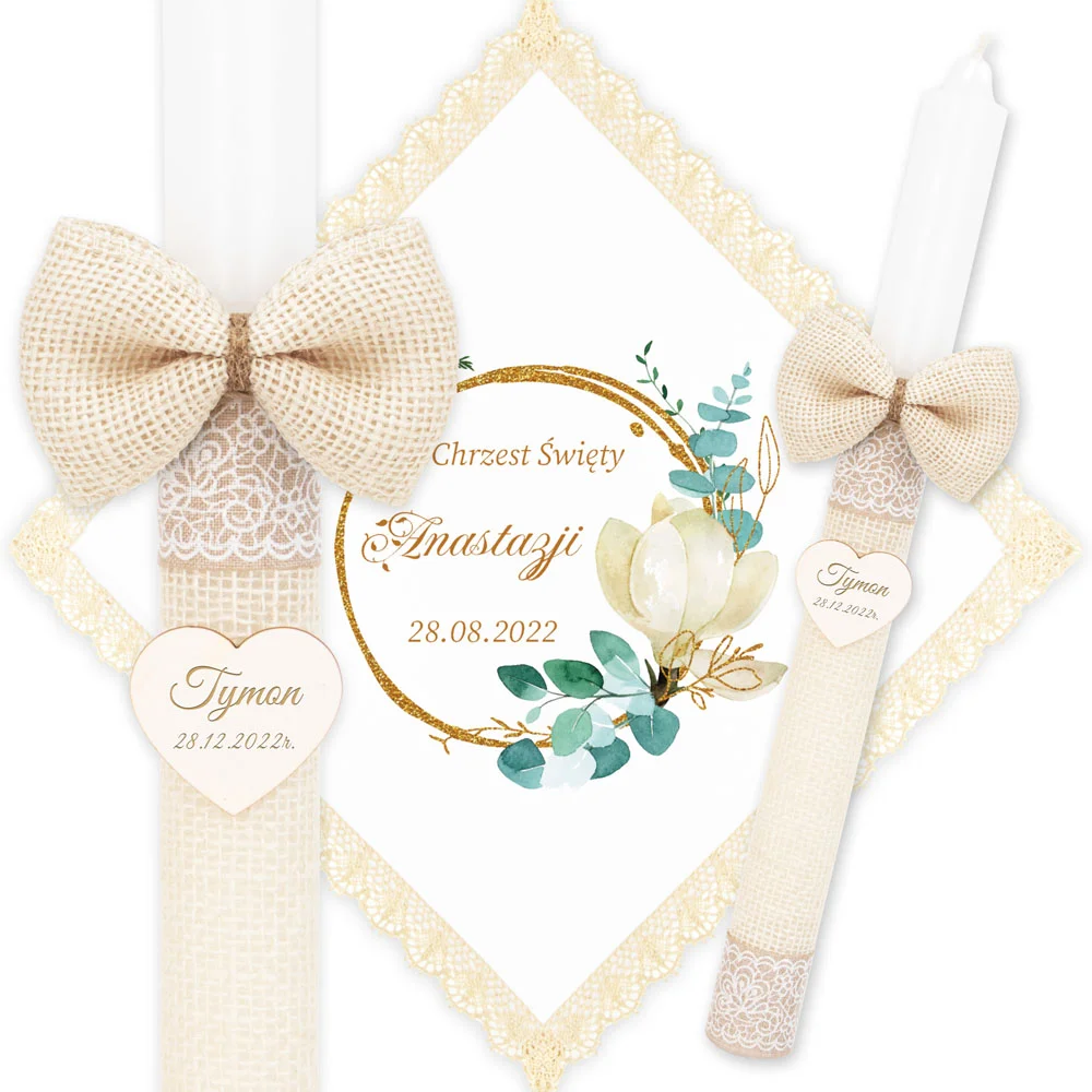 ✅ świeca na chrzest wraz z personalizacją (imieniem dziecka i datą chrztu),