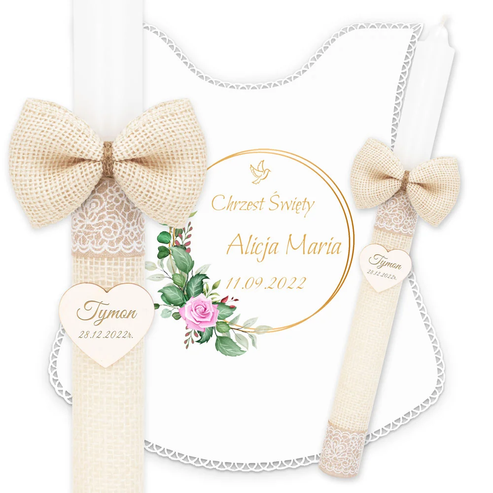 ✅ personalizacja (imię oraz data chrztu) na świecy oraz szatce.