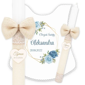 ✅ personalizacja (imię oraz data chrztu) na świecy oraz szatce.