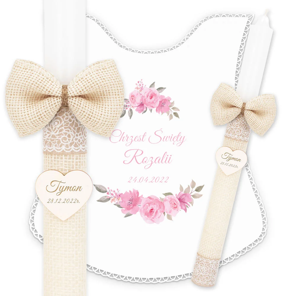 ✅ personalizacja (imię oraz data chrztu) na świecy oraz szatce.