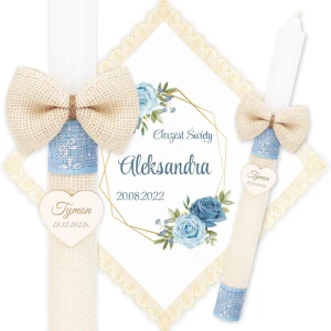 ✅ personalizacja (imię oraz data chrztu) na świecy oraz szatce.