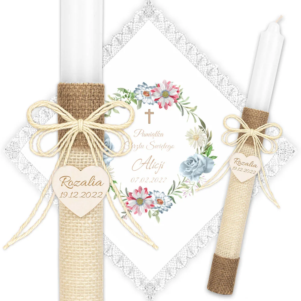 ✅ personalizacja (imię oraz data chrztu) na świecy oraz szatce.