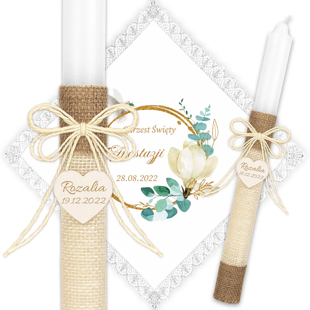 ✅ świeca na chrzest wraz z personalizacją (imieniem dziecka i datą chrztu),