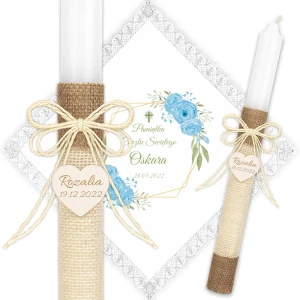 ✅ personalizacja (imię oraz data chrztu) na świecy oraz szatce.