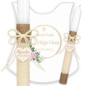 ✅ personalizacja (imię oraz data chrztu) na świecy oraz szatce.