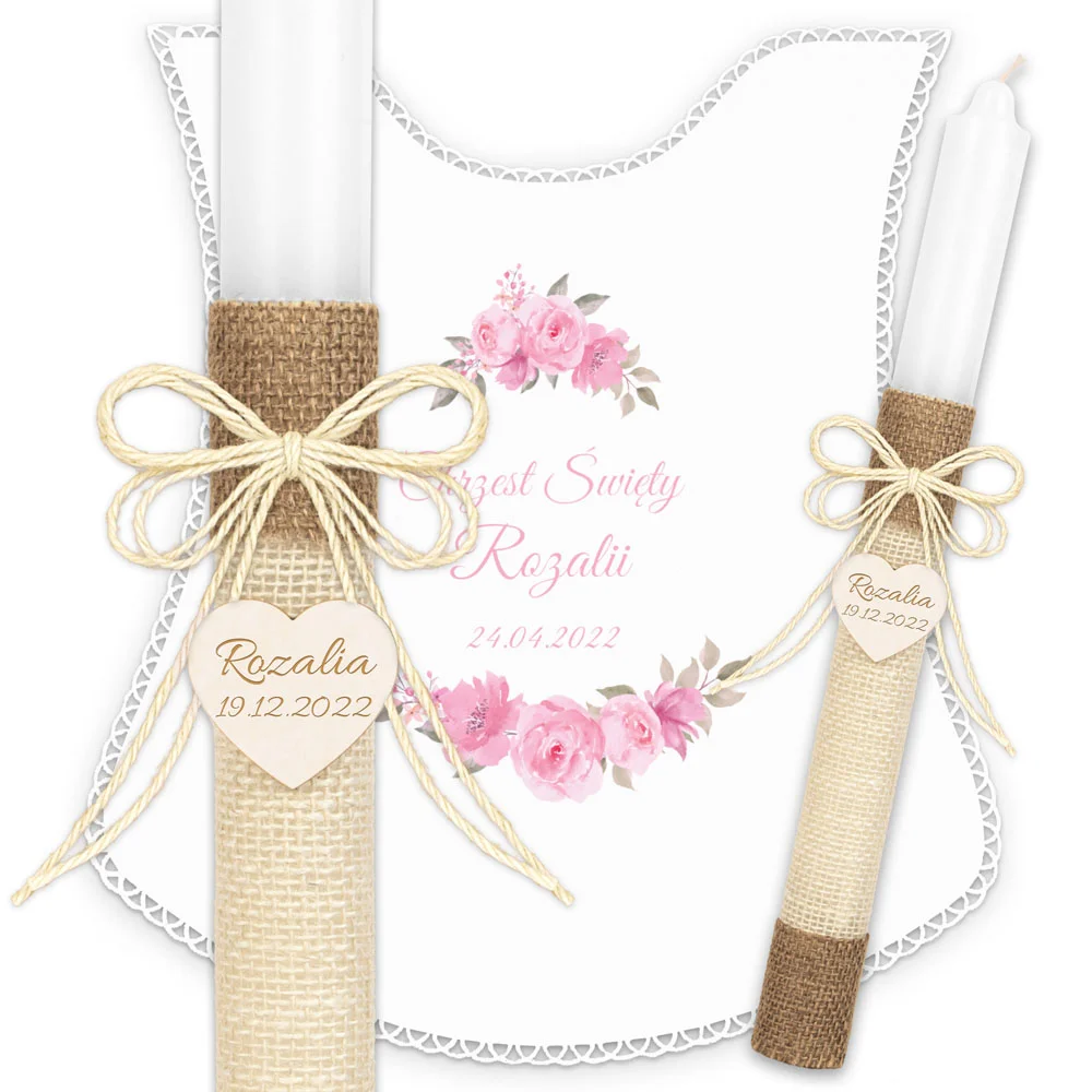 ✅ personalizacja (imię oraz data chrztu) na świecy oraz szatce.