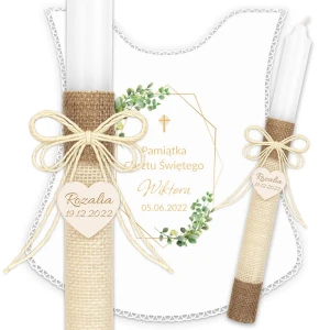 ✅ personalizacja (imię oraz data chrztu) na świecy oraz szatce.