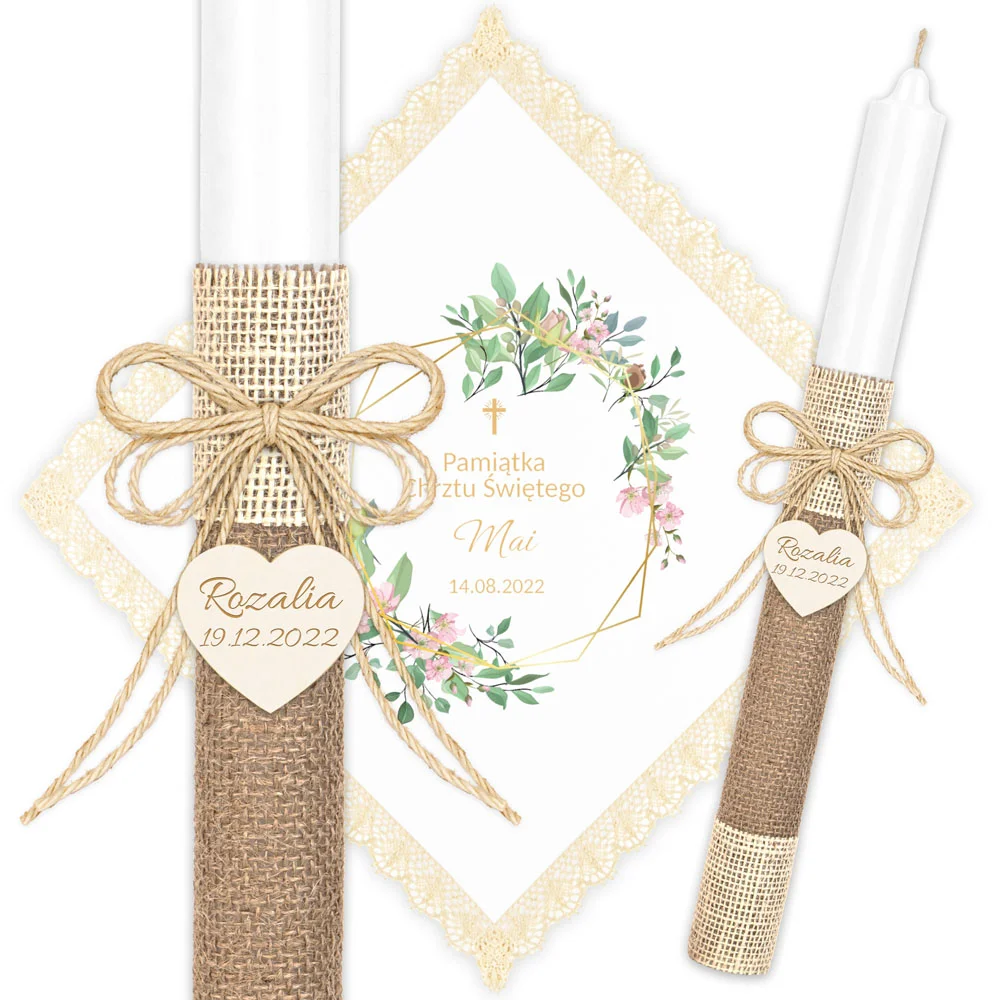 ✅ personalizacja (imię oraz data chrztu) na świecy oraz szatce.