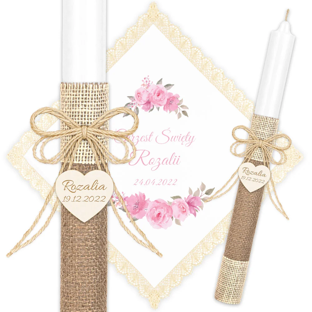 ✅ personalizacja (imię oraz data chrztu) na świecy oraz szatce.