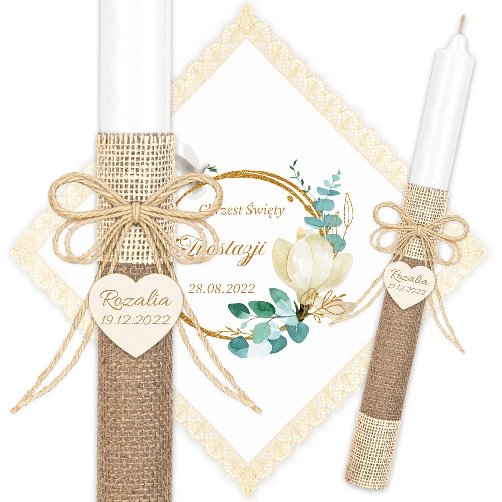 ✅ świeca na chrzest wraz z personalizacją (imieniem dziecka i datą chrztu),