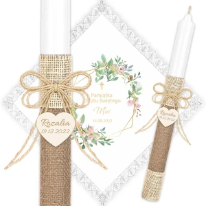 ✅ personalizacja (imię oraz data chrztu) na świecy oraz szatce.