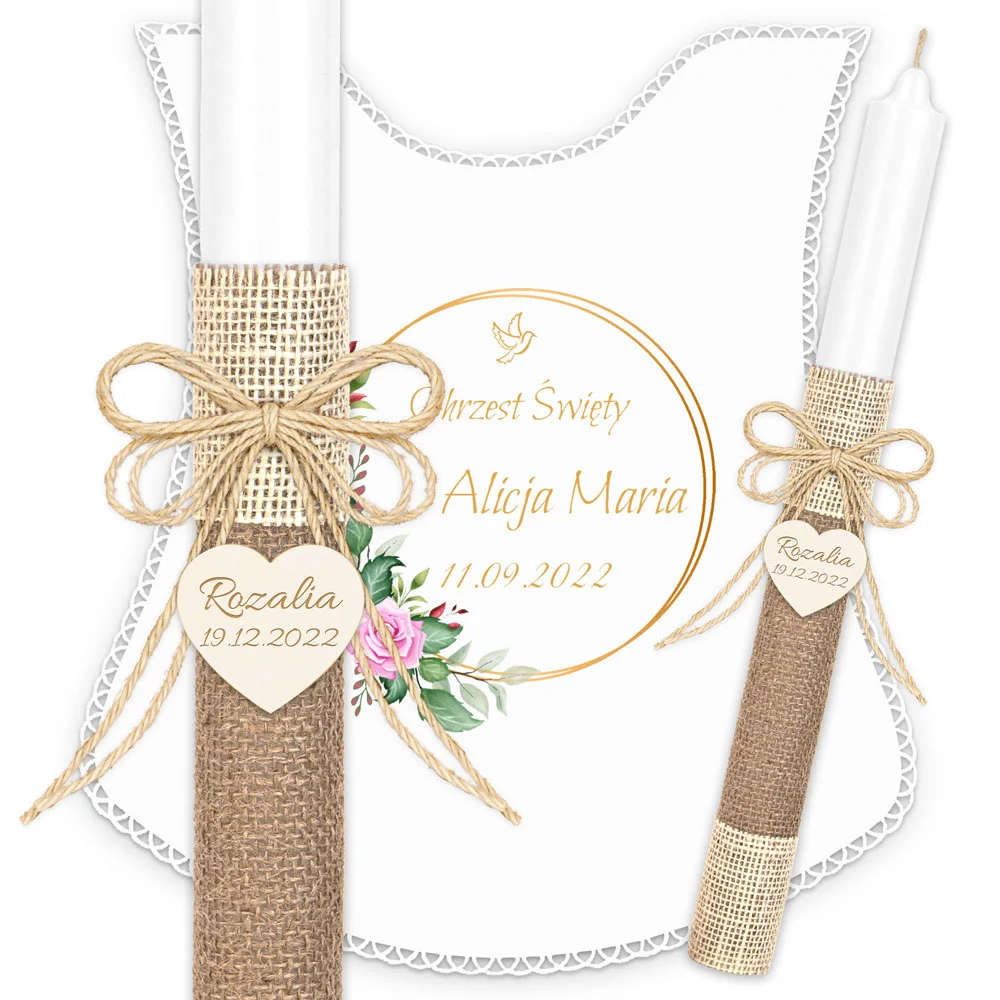 ✅ personalizacja (imię oraz data chrztu) na świecy oraz szatce.