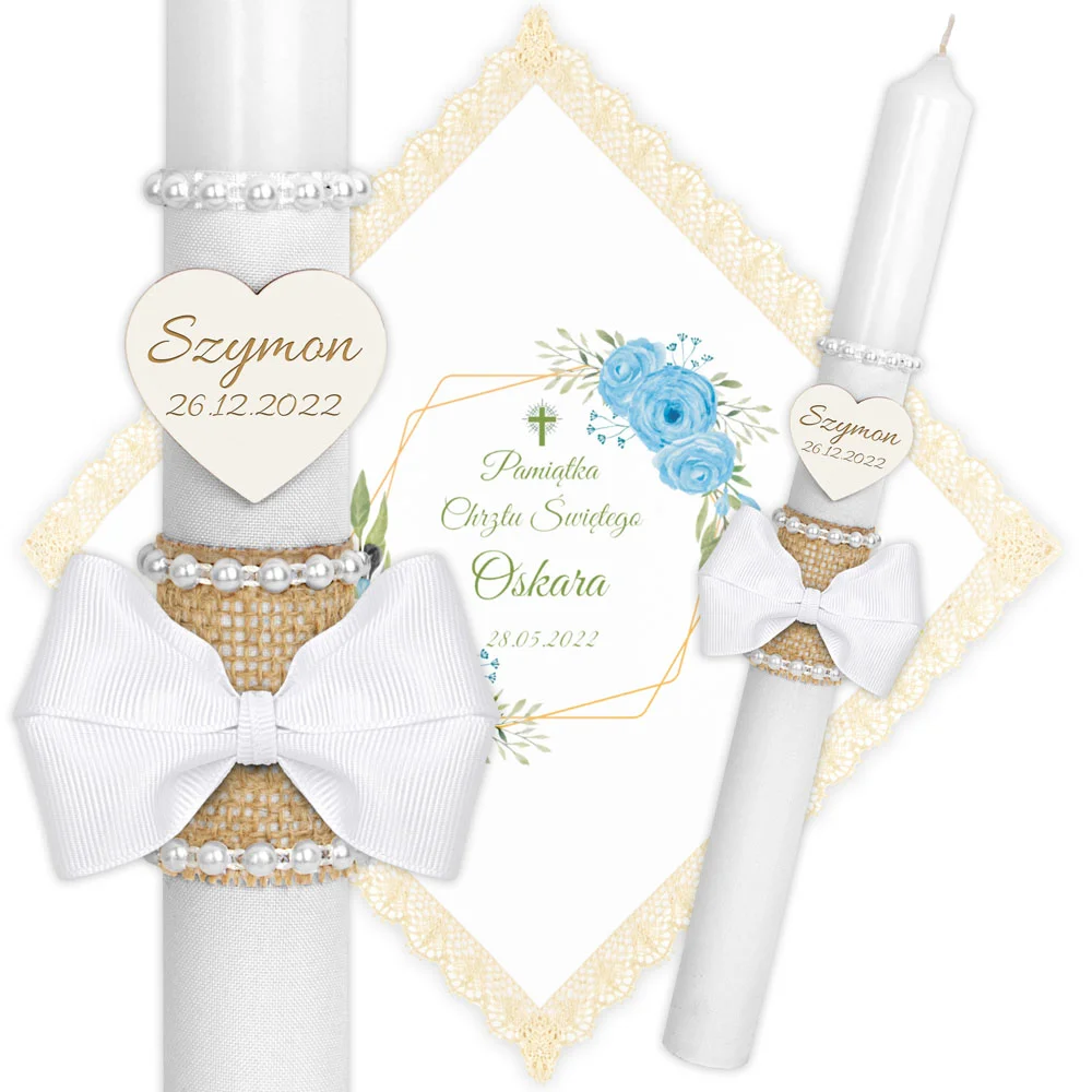 ✅ świeca na chrzest wraz z personalizacją (imieniem dziecka i datą chrztu),