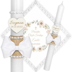 ✅ personalizacja (imię oraz data chrztu) na świecy oraz szatce.
