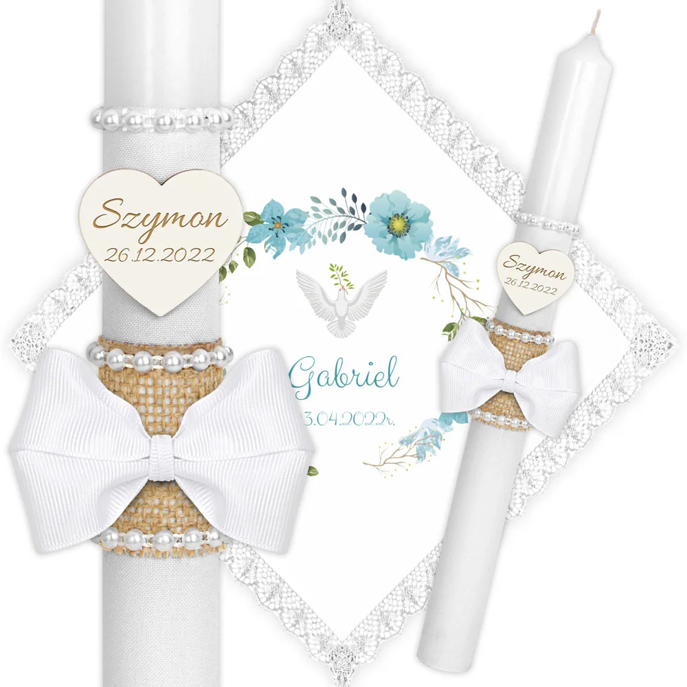 ✅ personalizacja (imię oraz data chrztu) na świecy oraz szatce.