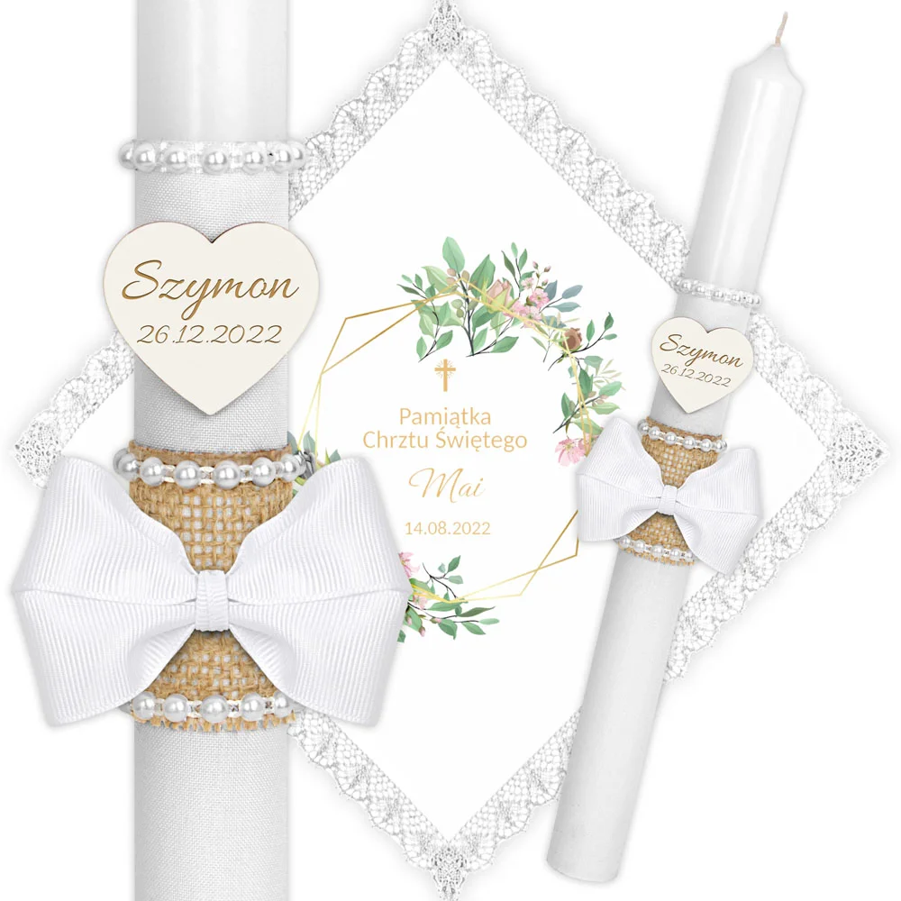 ✅ personalizacja (imię oraz data chrztu) na świecy oraz szatce.