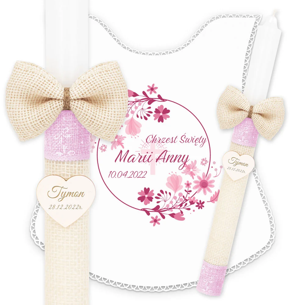 ✅ personalizacja (imię oraz data chrztu) na świecy oraz szatce.
