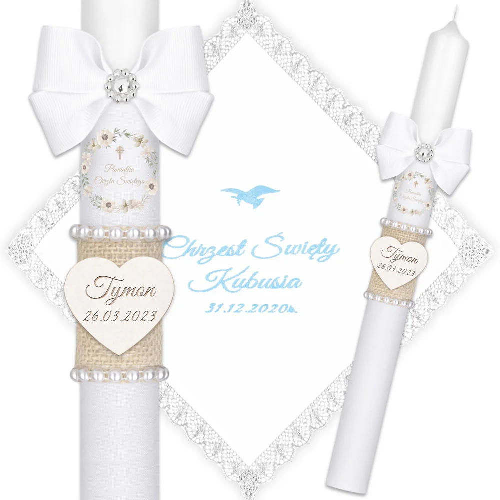 ✅ świeca na chrzest wraz z personalizacją (imieniem dziecka i datą chrztu),