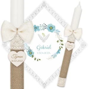 ✅ personalizacja (imię oraz data chrztu) na świecy oraz szatce.