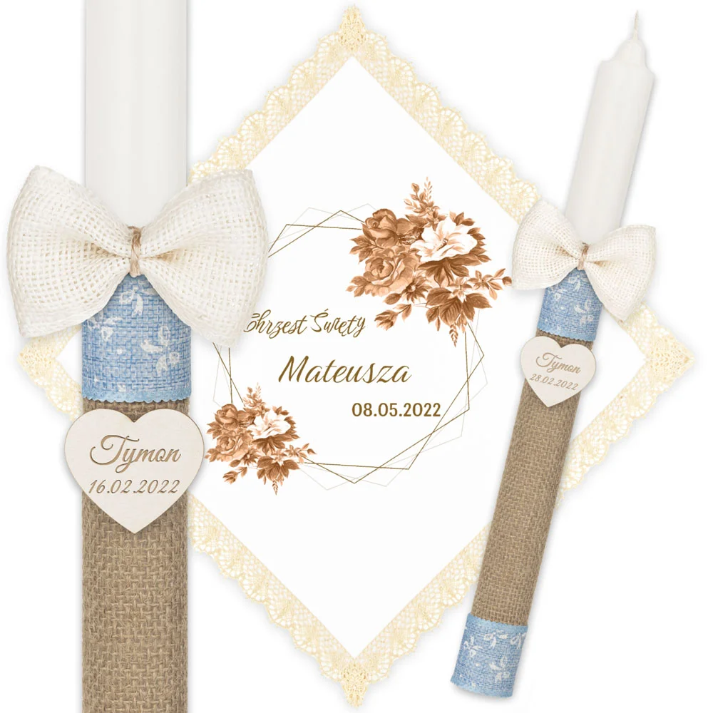 ✅ personalizacja (imię oraz data chrztu) na świecy oraz szatce.