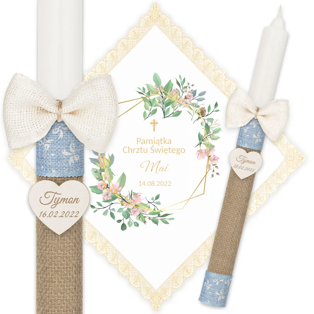 ✅ personalizacja (imię oraz data chrztu) na świecy oraz szatce.