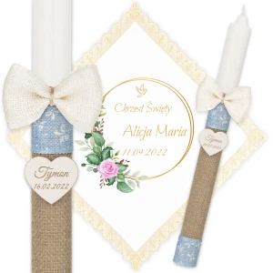 ✅ personalizacja (imię oraz data chrztu) na świecy oraz szatce.