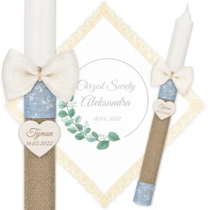 Ręcznie zdobiony zestaw Świeca oraz szatka do Chrztu Świętego.