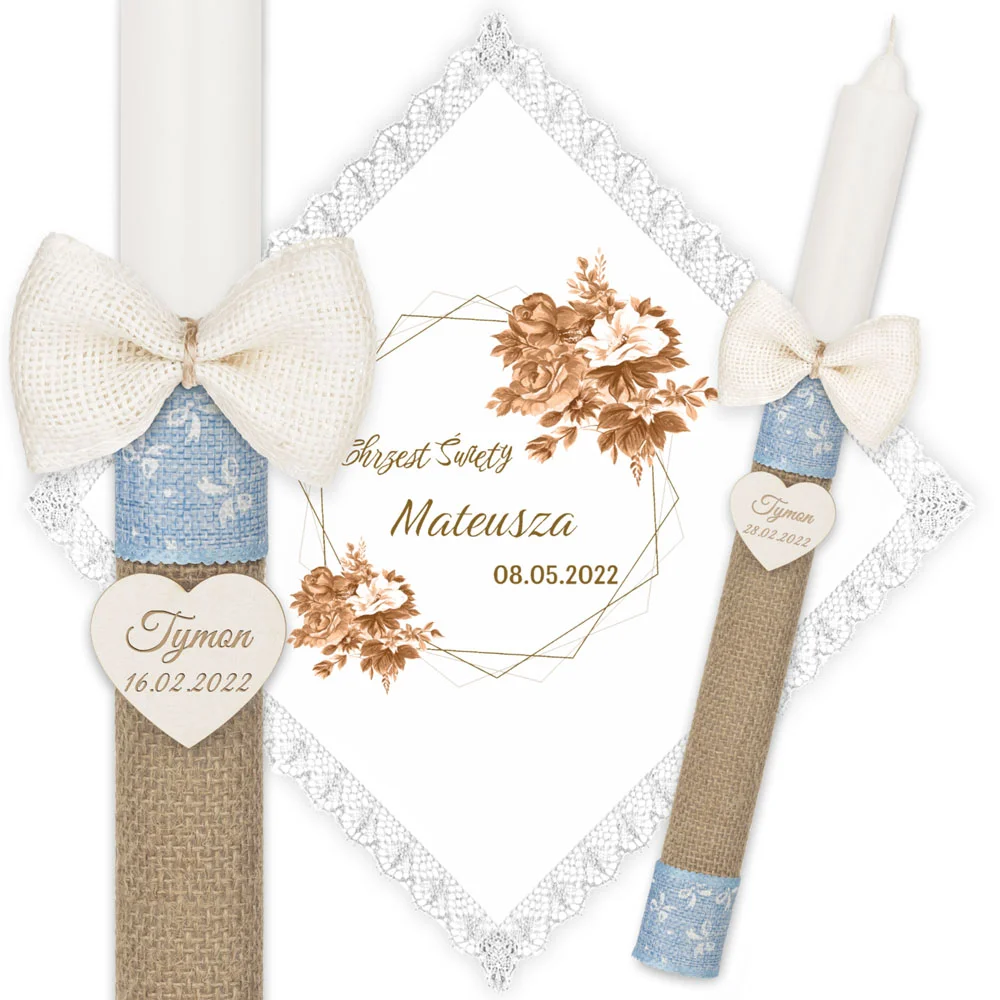 ✅ personalizacja (imię oraz data chrztu) na świecy oraz szatce.