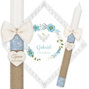 ✅ personalizacja (imię oraz data chrztu) na świecy oraz szatce.