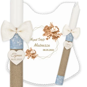 Ręcznie zdobiony zestaw Świeca oraz szatka do Chrztu Świętego.