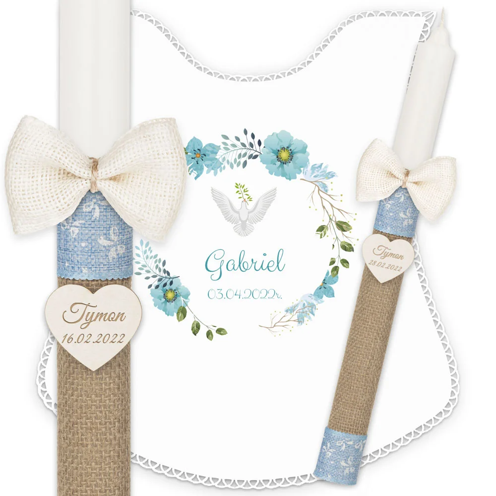 ✅ personalizacja (imię oraz data chrztu) na świecy oraz szatce.