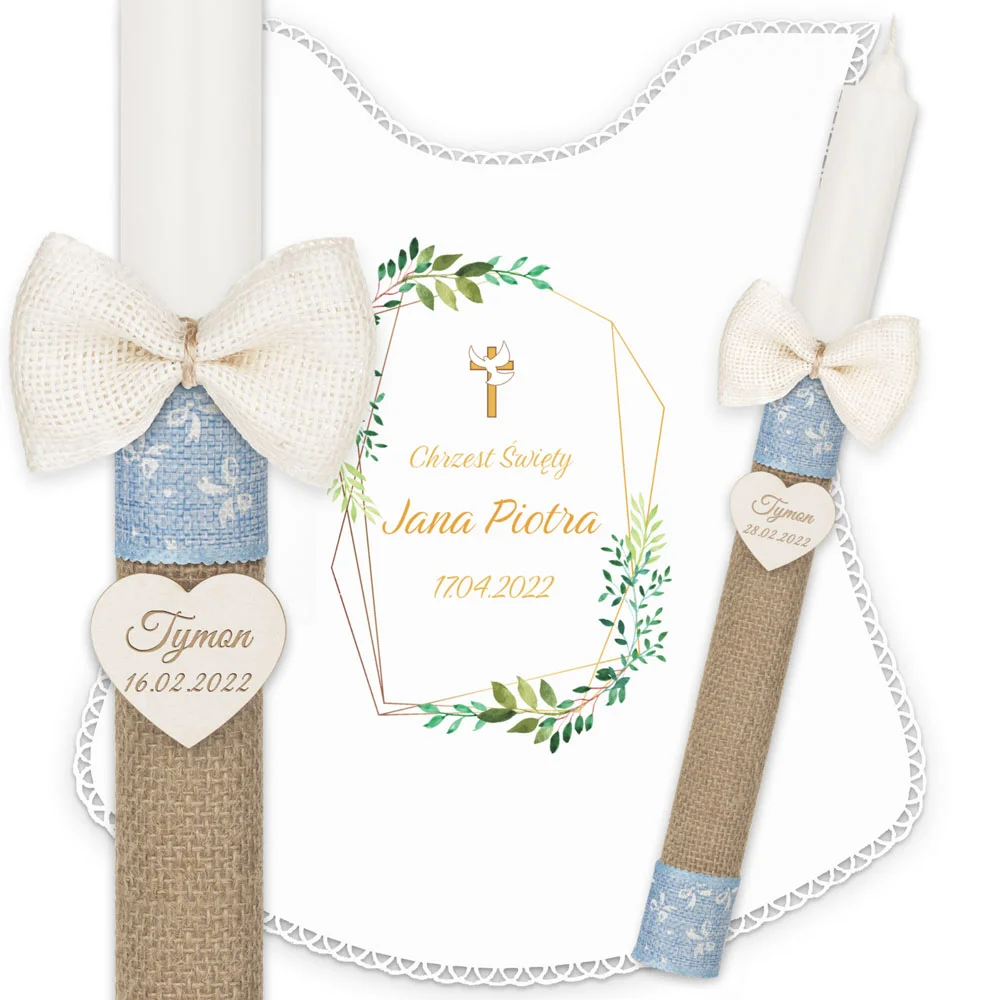 ✅ personalizacja (imię oraz data chrztu) na świecy oraz szatce.