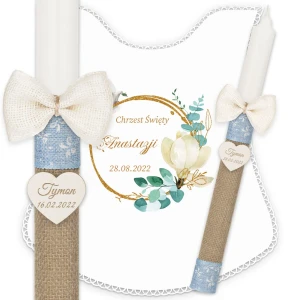 ✅ personalizacja (imię oraz data chrztu) na świecy oraz szatce.